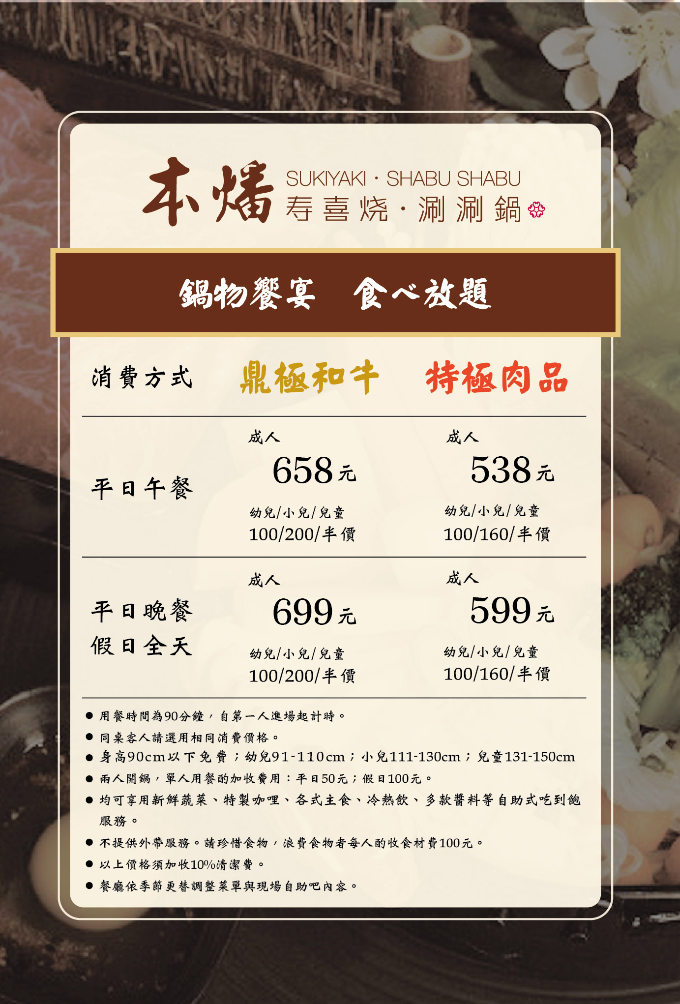 ●依季節更替調整菜單與現場自助吧內容。